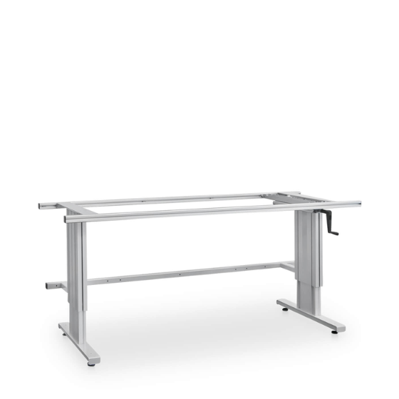 Grundgestell ohne Platte, Höhe verstellbar mit Handkurbel von 720-1020 mm, Pulverbeschichtung in RAL 9006 Weissaluminium